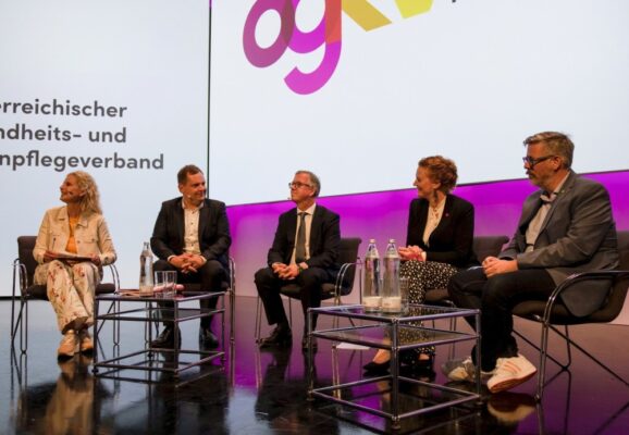 Über 500 Pflegekräfte aus ganz Österreich nahmen am Kongress teil. Viele blieben auch bis zum Abschlussprogramm, denn der ÖGKV (österreichische Gesundheits- und Krankenpflegeverband) lud zum Podiumsgespräch mit den Gesundheitssprecher*innen aller Parteien. Viele Pflegekräfte nutzten diesen Rahmen, um ihren Ärger, ihre Wut sowie klare Forderungen kundzutun.